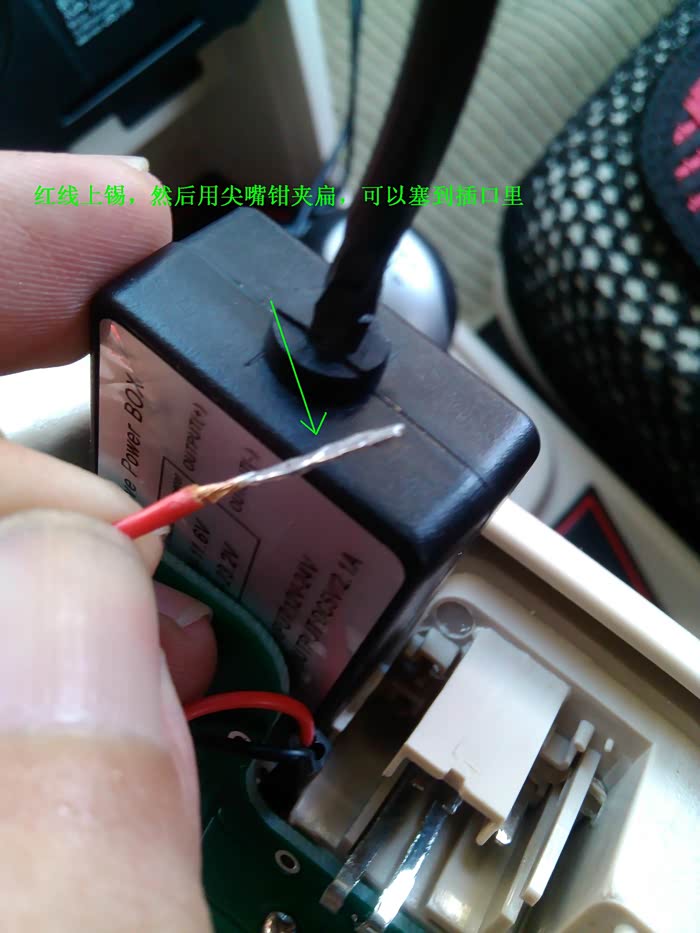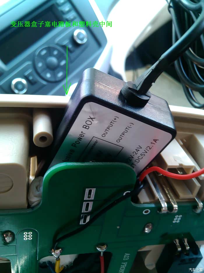 把12V转5V的变压线接上,小盒子塞在空的地方。