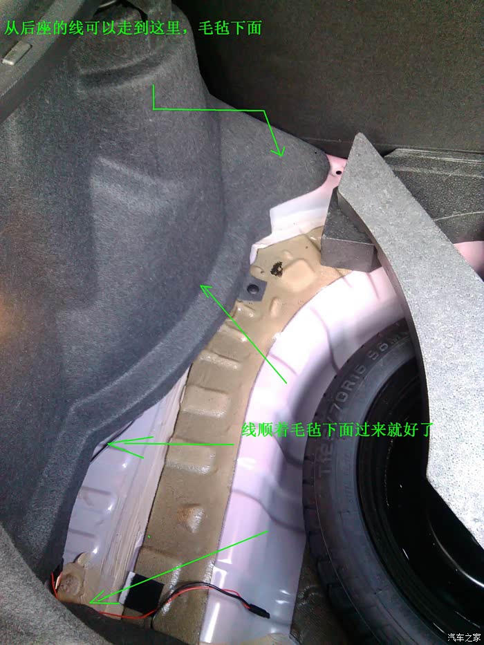开动了,我不想从点烟器走线,感觉那样走线不好看。从阅读灯接线的话,方便。