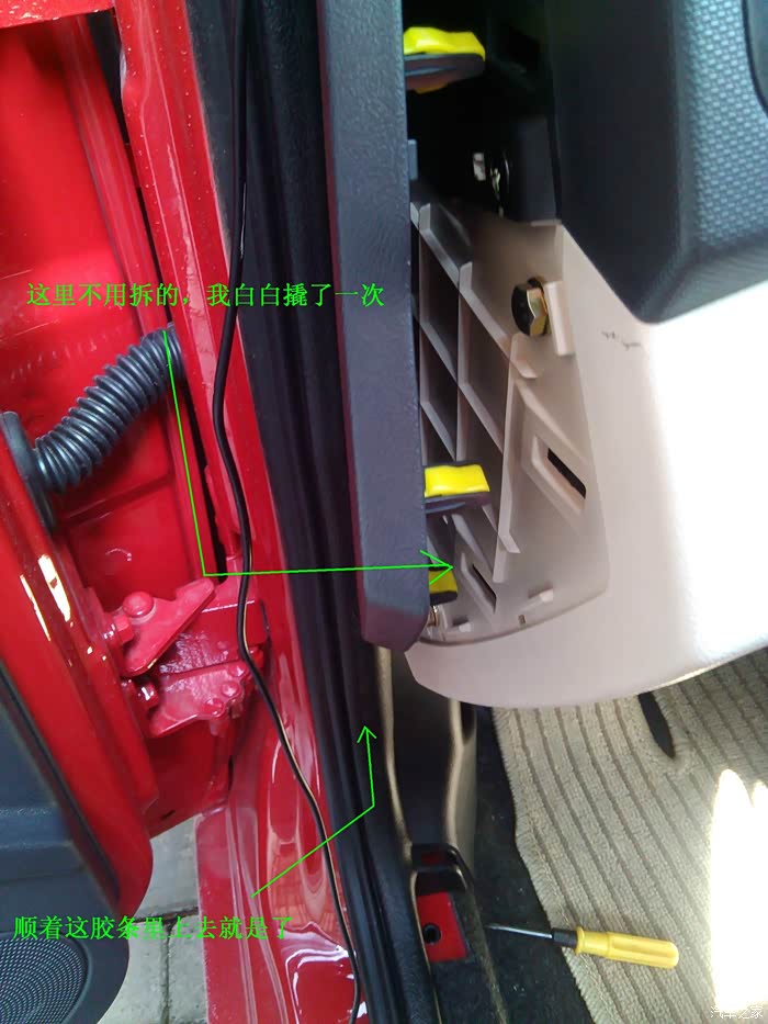 到这里,记录仪前面录像就好了,接下来是后视接线了。最麻烦,最耗时间的来了。