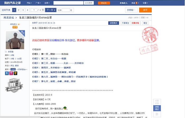 。 这次东北边境行,从去年西藏回来就订好了。一行四人,车辆RAV4,七天全程4700公里, 人均费用2350,油费2395元,高速费1430元.本来这次路线中包含漠河北极村 ,由于其他两位同志时间紧,还怕远,所以就临时取消了。遗憾了,去年西藏行是2014年9月9号出发的,今年是9月8号,因为出发早,所以都住我家了,早上3点半我就叫大伙起床 ,4点半开拔。 为了这次出行,我也是看了几天的攻略和帖子,对漠河北极村很向往,在我的世界里旅游和旅行有着不同的理解,旅游是常规时间,游的是景点和人,旅行是淡季非常规时间,行的是路上的感觉,对,我要的就是旅行。