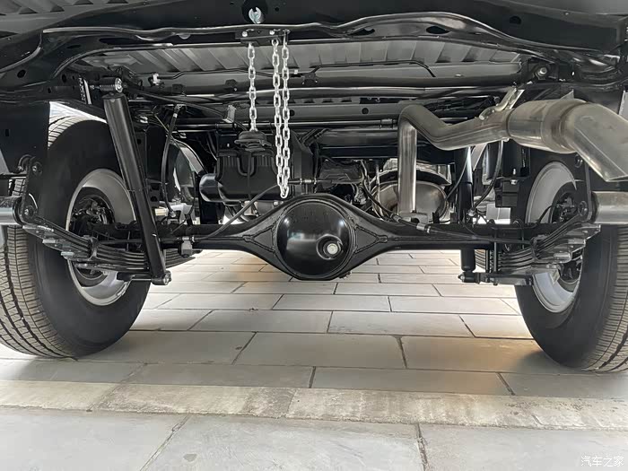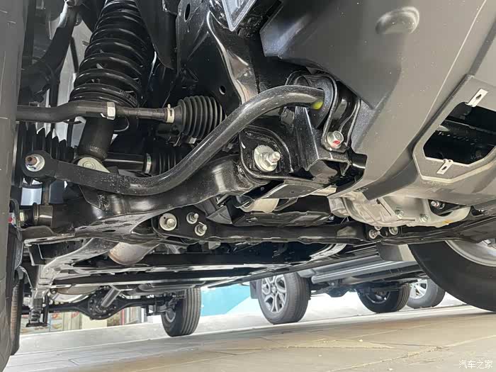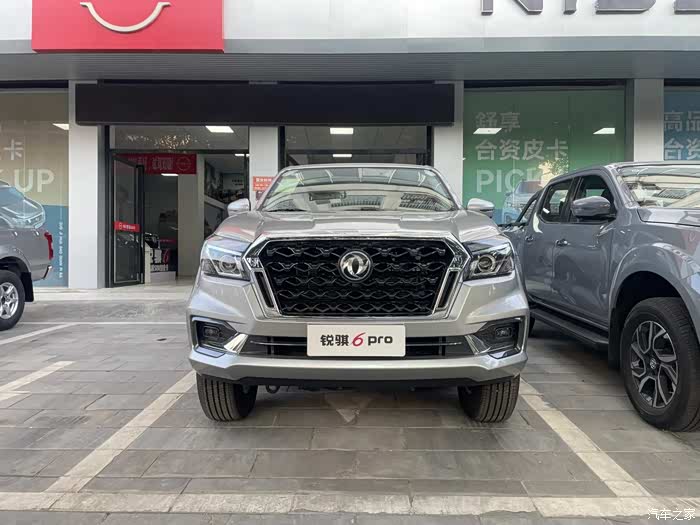 底盘的话,锐骐6 Pro用的是前双叉臂独立悬架,后钢板弹簧非独立悬架。这种底盘结构在皮卡车型里很常见,实用性和耐用性都算是久经沙场考验了,很稳定。