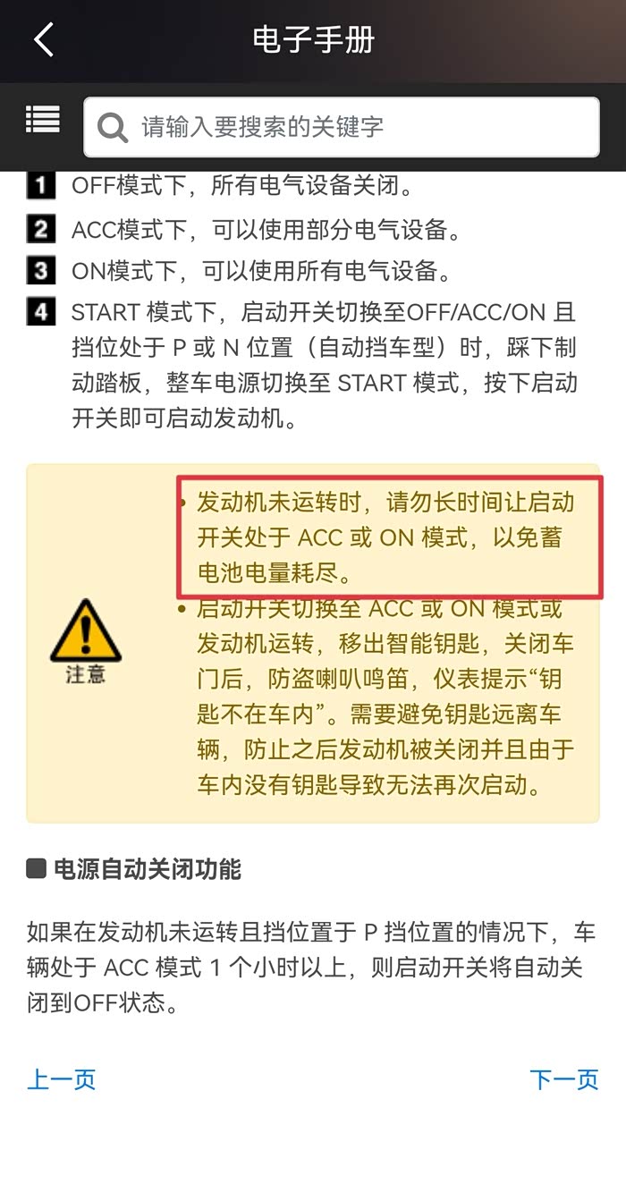 下面来说说星途的节电模式。当中央控制器检测到蓄电池电量降低时会自动转入车辆节电模式,进入节电模式后部分功能是限制使用的。