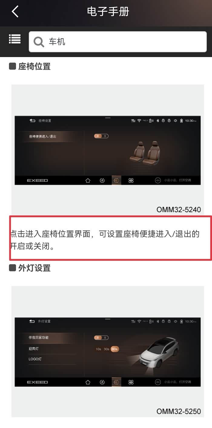 星途配置了主驾驶电动座椅迎宾功能,当主驾驶门打开座椅会自动调整到车主设置的位置,当车辆熄火开门后座椅会调节到最后位置方便下车。这个功能确实显得很高大上,最早体验这个功能追溯到一台奔驰E系列上,连同方向盘自动调节很有仪式感。我个人关闭了这个功能,主要有时临时下个车它也移动半天,有时熄火我不想让他移动可因为开了下门座椅后置了,总之有很多场景让我不太习惯,而且对蓄电池只有坏处没好处,所以就直接关掉了。