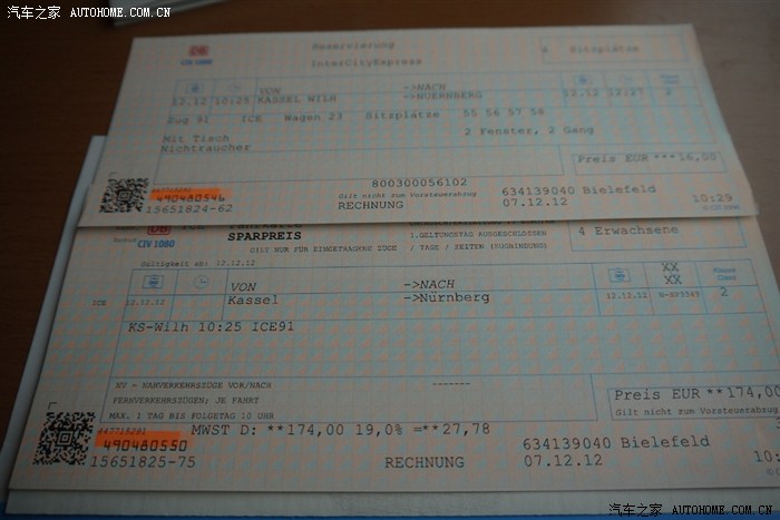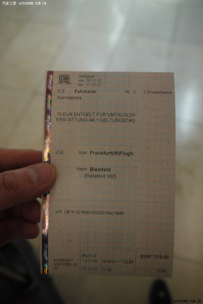 坐火车到比勒菲尔德,火车票真贵啊,两个人要212 EUR