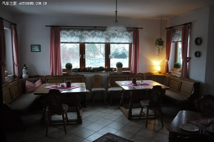 第二天8点起床,天还没完全亮洗漱完毕,天亮了,路灯已灭酒店里的楼道前台说是酒店,其实就是个家庭旅馆,客人和主人都住在同一幢房子里餐厅楼梯酒店外景,很漂亮的大房子