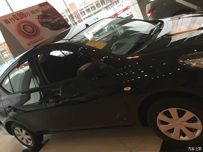 当时时间比较晚了,最后就去了石龙日产看车,服务方面日产是做得比较不错的,有个销售小妹全程陪同,当时去看了轩逸,销售小妹问我们价位多少,我说10W以下最后,销售小妹就推荐了阳光,她说这个车现在低配优惠2W多,价格比较实惠,当时被这个价格优惠两万多忽悠了,就去试车,空间很大,内饰...惨不忍睹,外观...勉强过得去吧,动力...没有试驾车不晓得