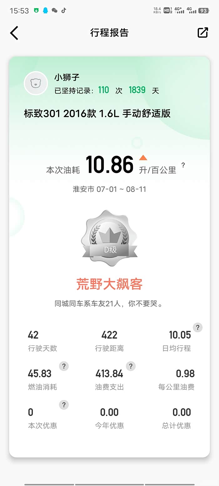 16款自动挡1.6的301,跑了十万公里,正时皮带都换了,表显油耗10.8。。。。加满油显示续航里程为560公里。。。。这,,咋办。。。