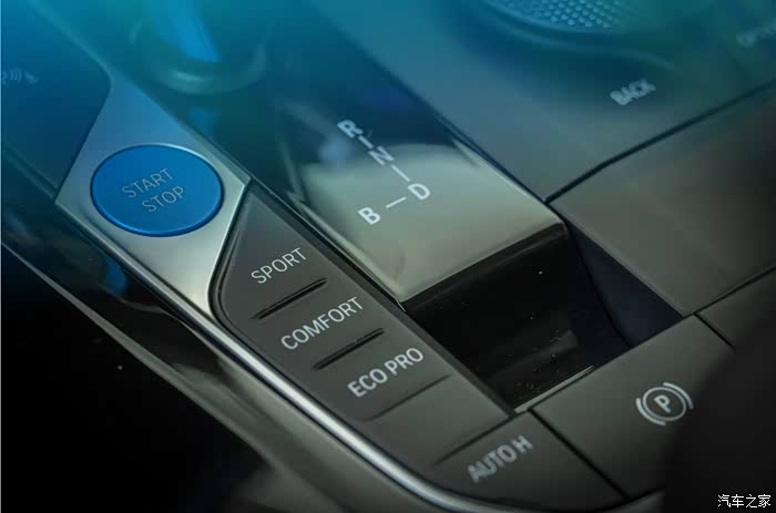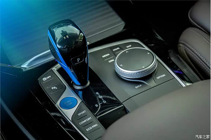 我想再次强调这蓝色调性的鸡腿挡把与启动按键,这种专属的设计就是为纯电的宝马iX3而来。