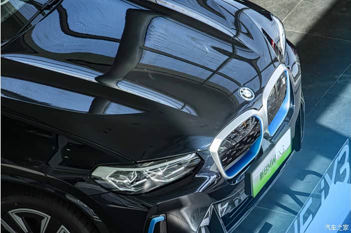 而我们探店计划中的宝马iX3,据说则是新的前后包围设计及半封闭双肾进气格栅,3D立体效果自适应LED大灯结合3D立体悬浮LED尾灯,视觉观感更丰富科技感更强,还有车身周围专属蓝色设计(孩子眼中的蓝色魅惑)外观上再次区分了两者。