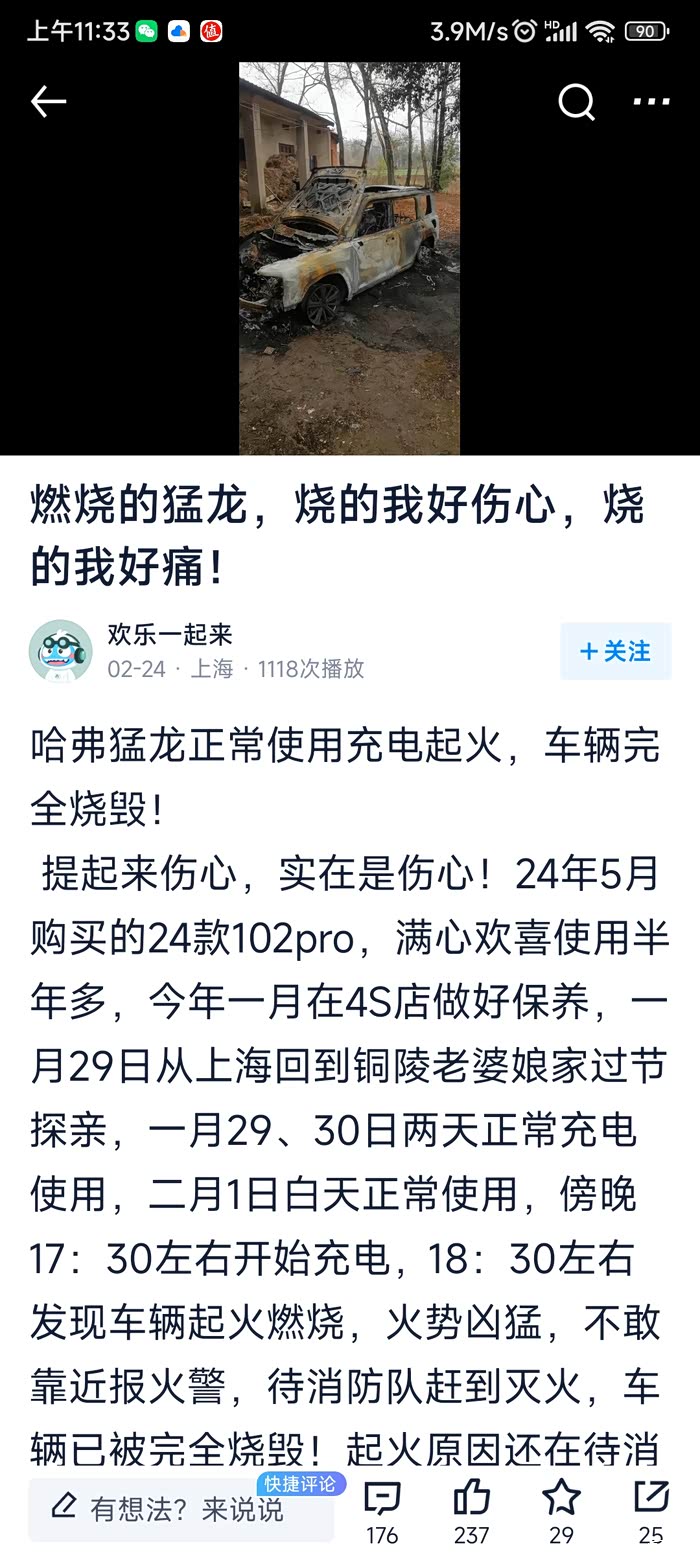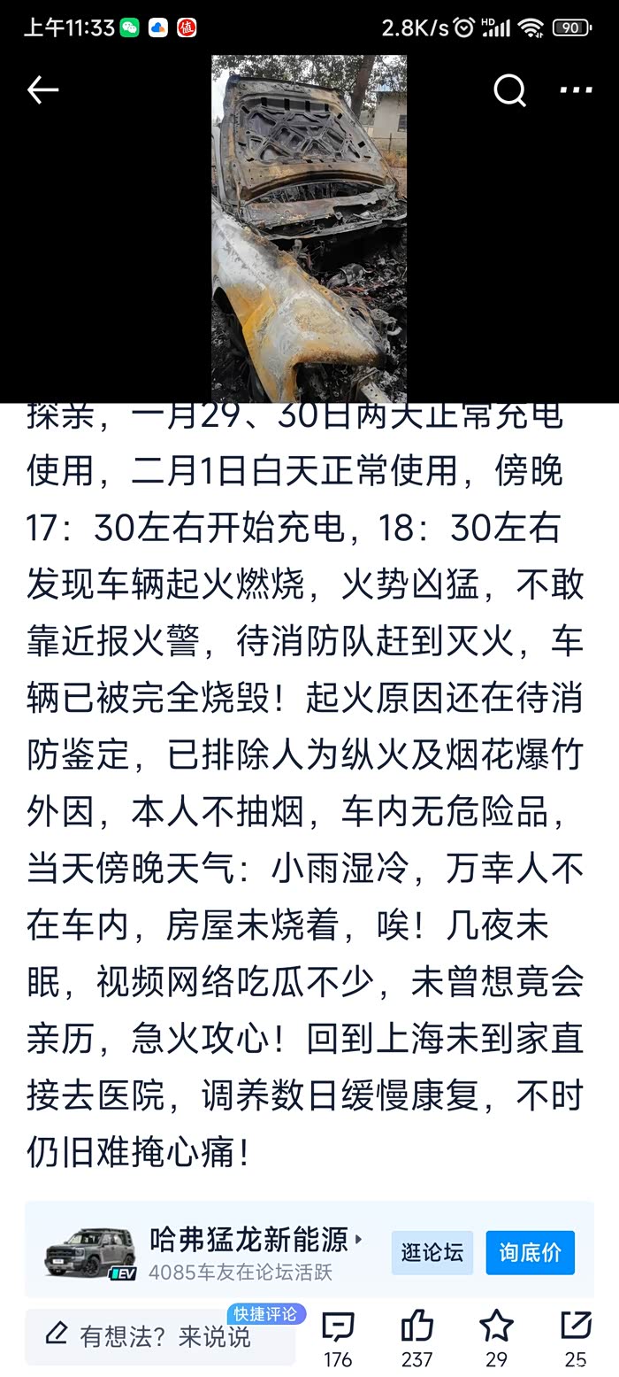 调查结果出来之前不做任何评论,仅谈点自己的感想:任何设备,包括民航飞机, 一定概率的出事都是自然规律;作为汽车驾驶员,要仔细阅读使用手册,尤其是安全事项,要爱护车车,别瞎霍霍;作为新能源汽车驾驶员,对电池要多一份注意,比如烂路蹭底盘了,马上停车(车上人员撤离)、检查 ,发现异常情况及时去4S店进行专业检查,尽可能排除隐患....