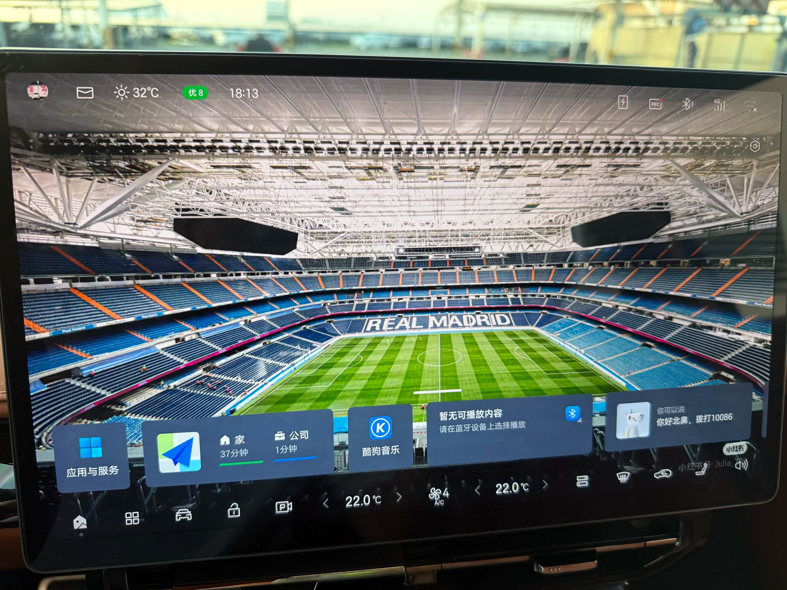 中控屏壁纸亮出身份,Hala Madrid我的爱队,作为足球运动爱好者,没有一点足球的元素怎么行。车内还挂着一个已经被太阳晒到退色的日本平安符,是八年前专门从日本带回来,从第一台车沿用至今,保交通安全平安。