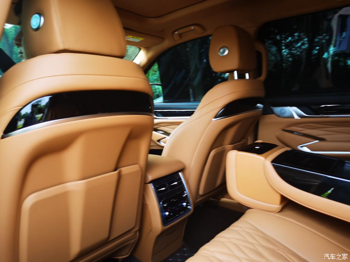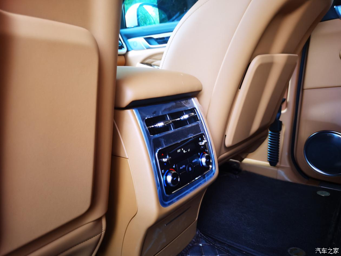 后排也配备了两个文件袋,中央位置调节空调和座椅通风,挺方便的。