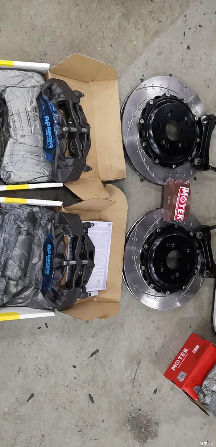 换下来的卡钳跟轮毂,卡钳的刹车皮跟盘还很新,就跑了2000公里左右,19寸305品牌的轮毂也跟新的一样 没伤痕,有兴趣的老铁可以咨询我。