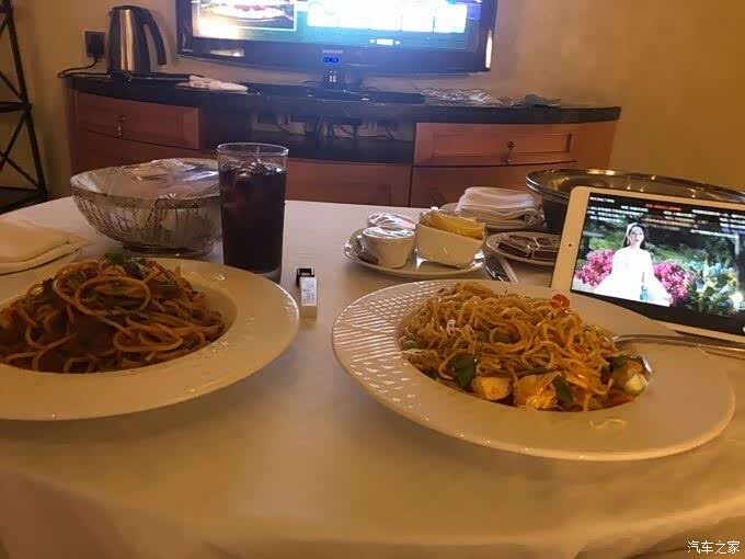 人在囧途的两人总算可以到酒店进餐了。