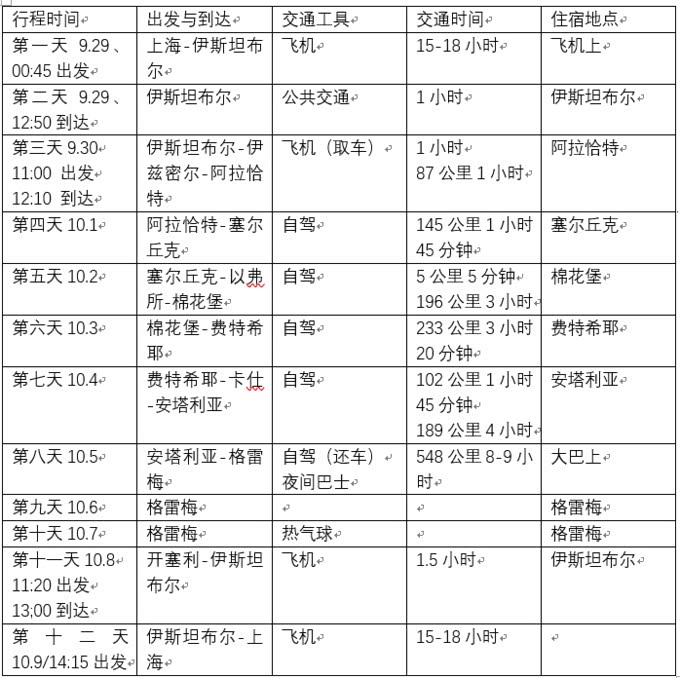 假期: 土耳其自驾起码十天以上,我们这次选择在国庆出行,前后还请了好几天假。