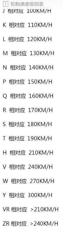 然后这车因为极速是221km/h,所以轮胎贵一点非常正常,轮胎是有速度上限的,具体的可以参考下图。