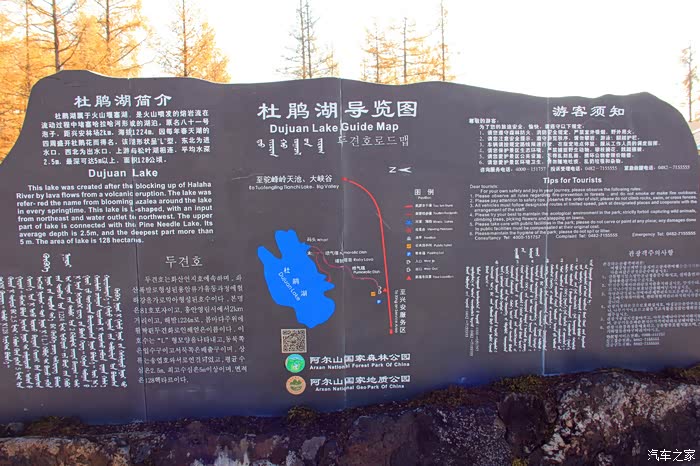 D3、阿尔山市—阿尔山国家森林公园—新巴尔虎左旗—280.3公里,走S203。宿新巴尔虎左旗。看点:阿尔山国家森林公园。