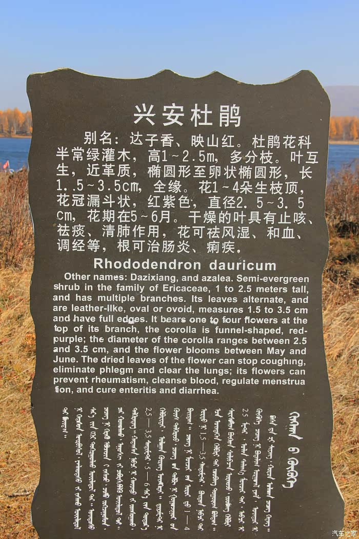 这次自驾游是和朋友结伴,单车五人,游览了吉林西北部、内蒙东部边陲和齐齐哈尔部分地区。具体路线是:黑龙江的肇东、肇州、肇源,吉林的松原、大安、白城,内蒙的乌兰浩特、阿尔山、新巴尔虎左旗、满洲里、呼伦贝尔市(海拉尔)、牙克石、扎兰屯、阿荣旗,黑龙江的甘南、齐齐哈尔、林甸、大庆等地。这次出游,行经松嫩平原、大兴安岭、郭尔罗斯草原、科尔沁草原和呼伦贝尔草原。季节虽已是深秋,草原枯黄,农作物大部分已收割完毕,但别有一番景致。草原黄绿相间,没收割的庄稼一片金黄,大兴安岭山区呈现“五花山”景观,浓彩重抹,景色靓丽,胜于夏季的翠绿。祖国山河宽广壮扩,景色优美秀丽,不同季节,各有特色,都有使人难以忘怀的美景。