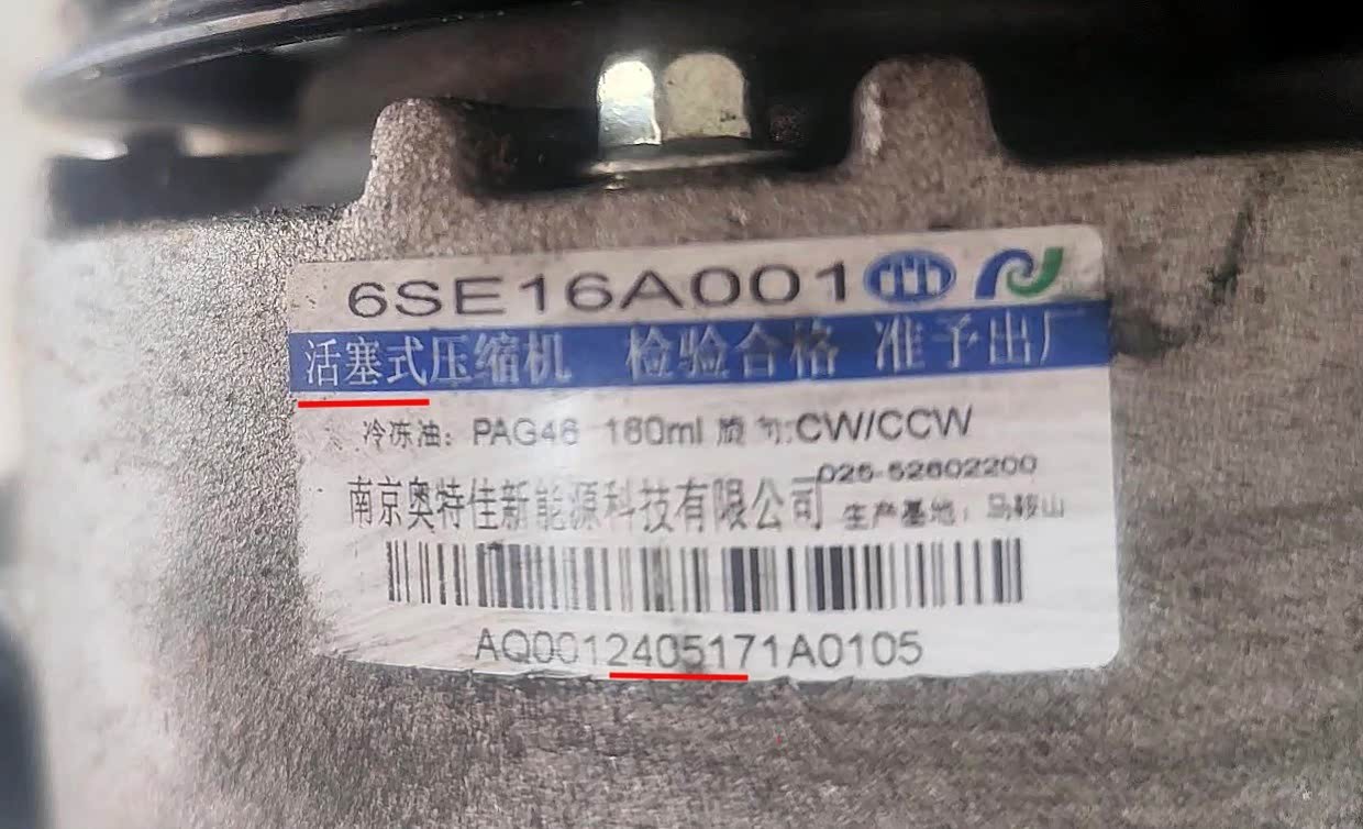 但这台奥特佳压缩机并不是涡旋式的,而是活塞式的。