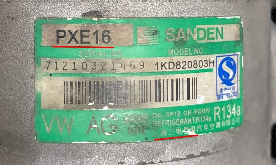型号PXE16,由上海三电贝洱汽车空调有限公司生产。