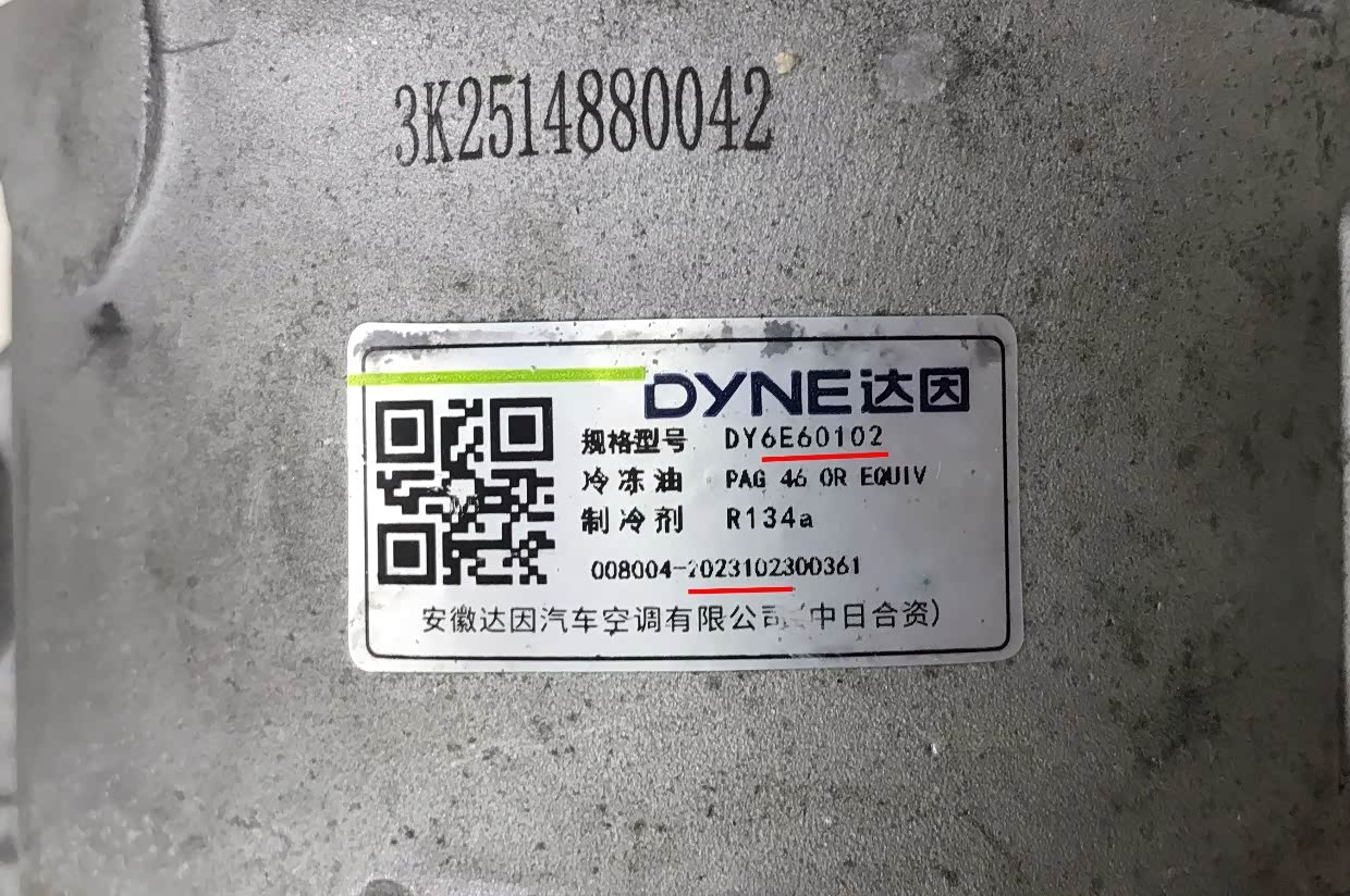 不久后找到了一台达因压缩机,型号6E60102,生产日期2023年10月23日。