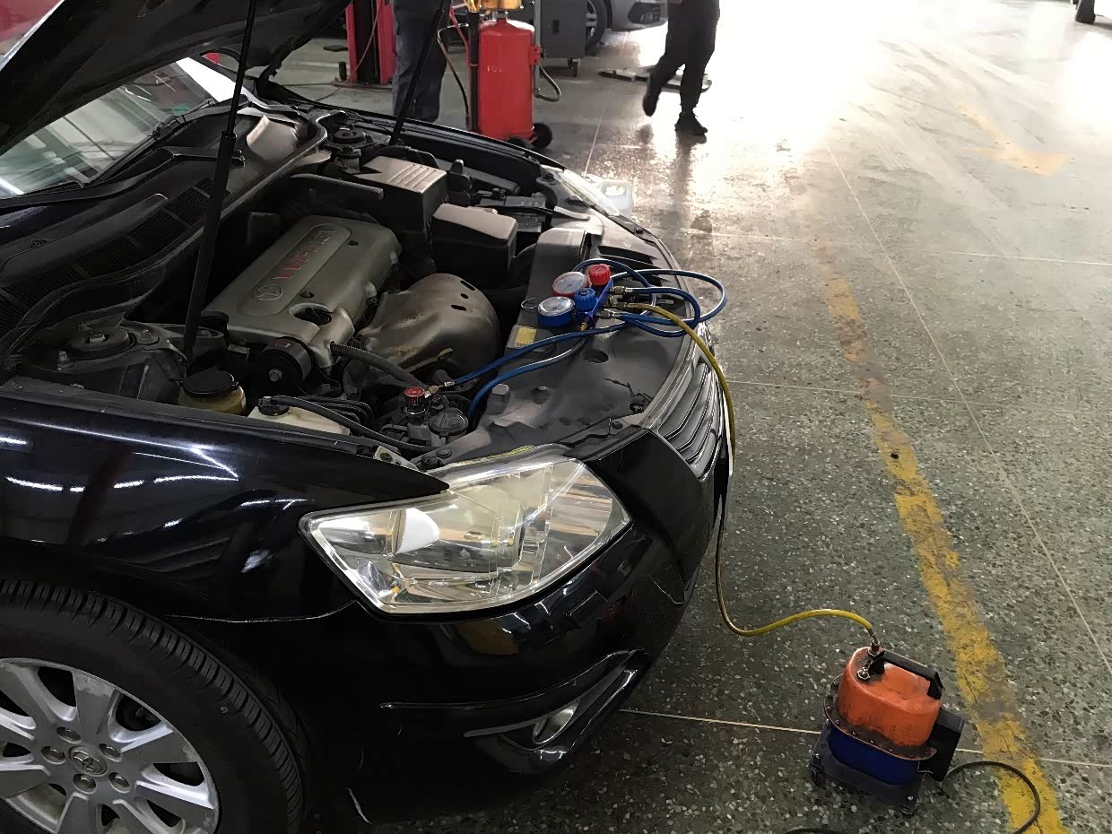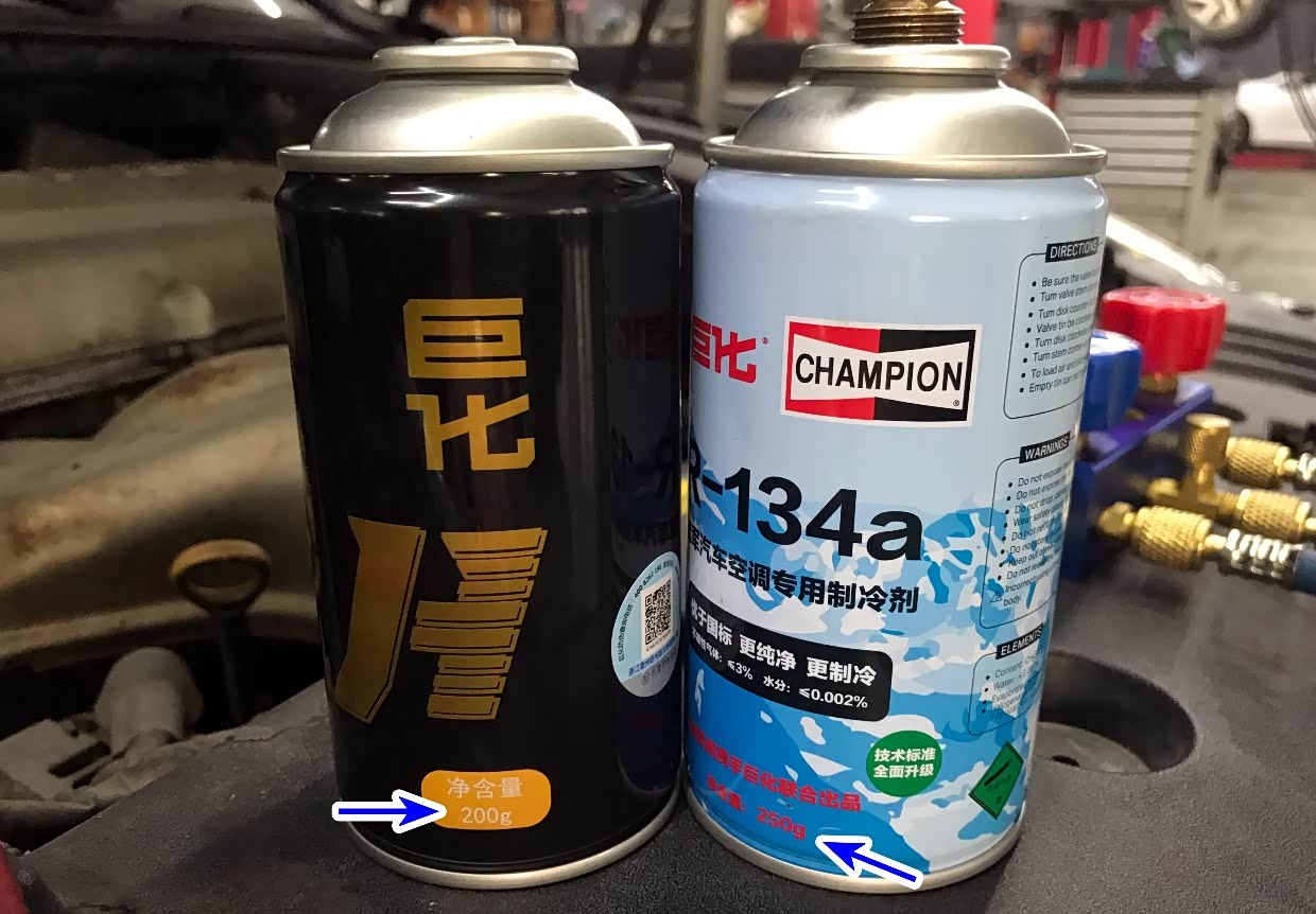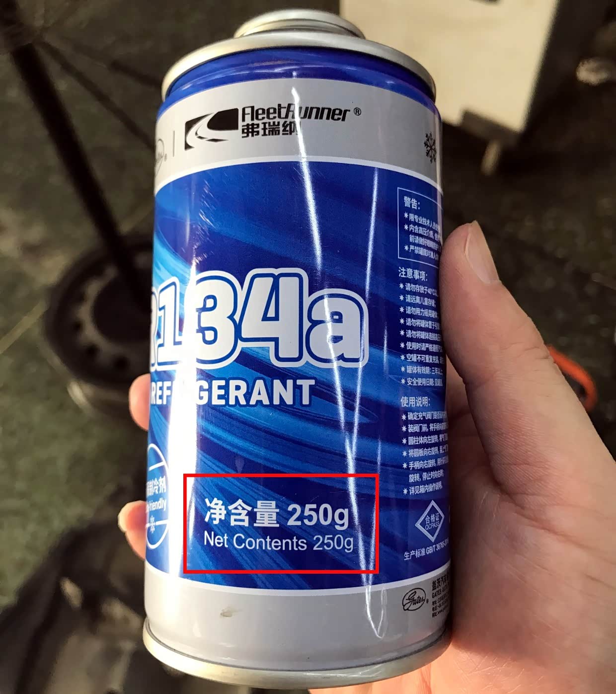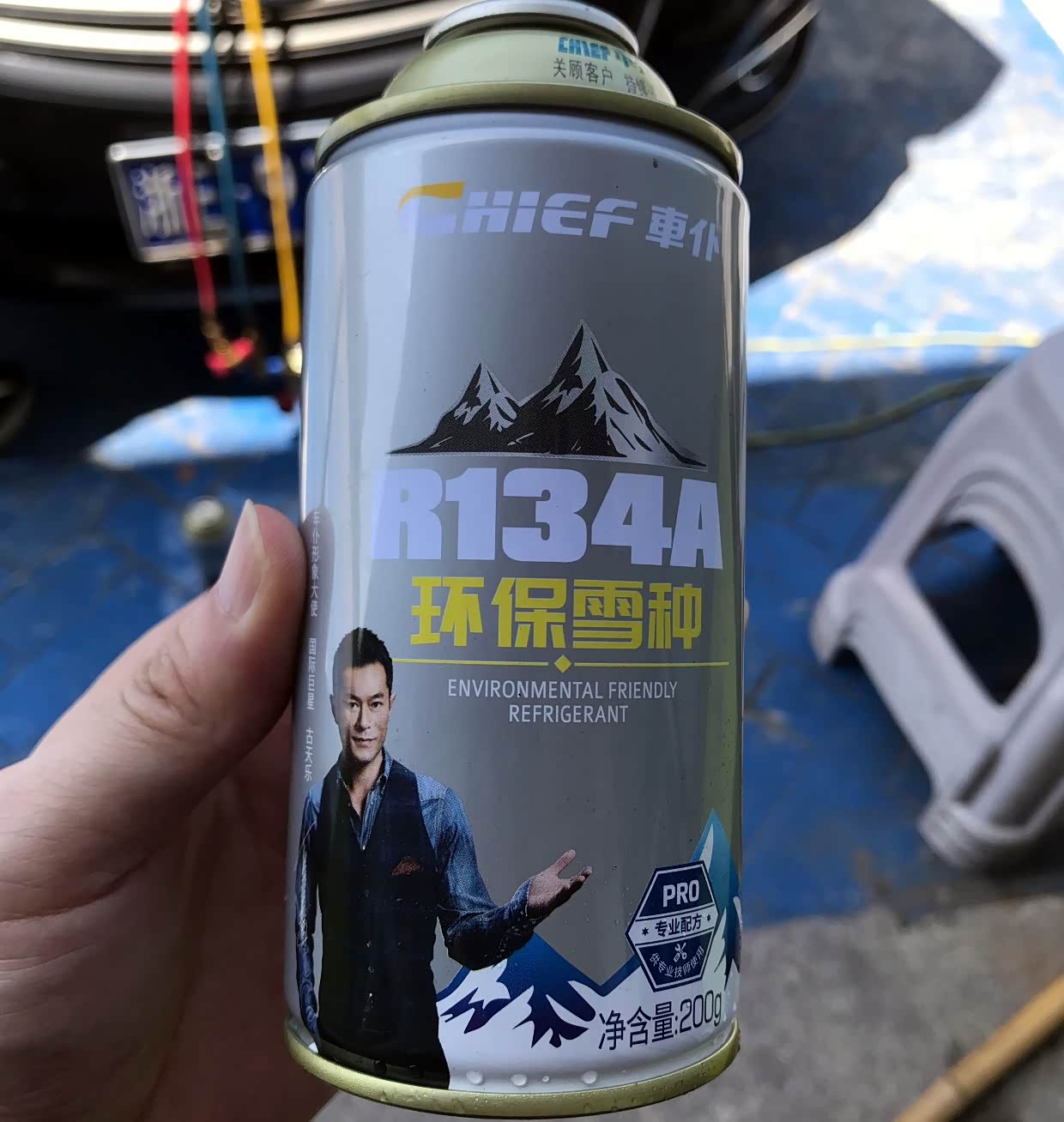 按维修手册要求加入450 - 550克冷媒,加两瓶500克正好。