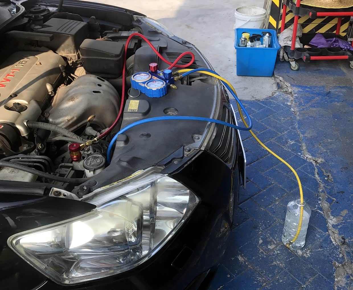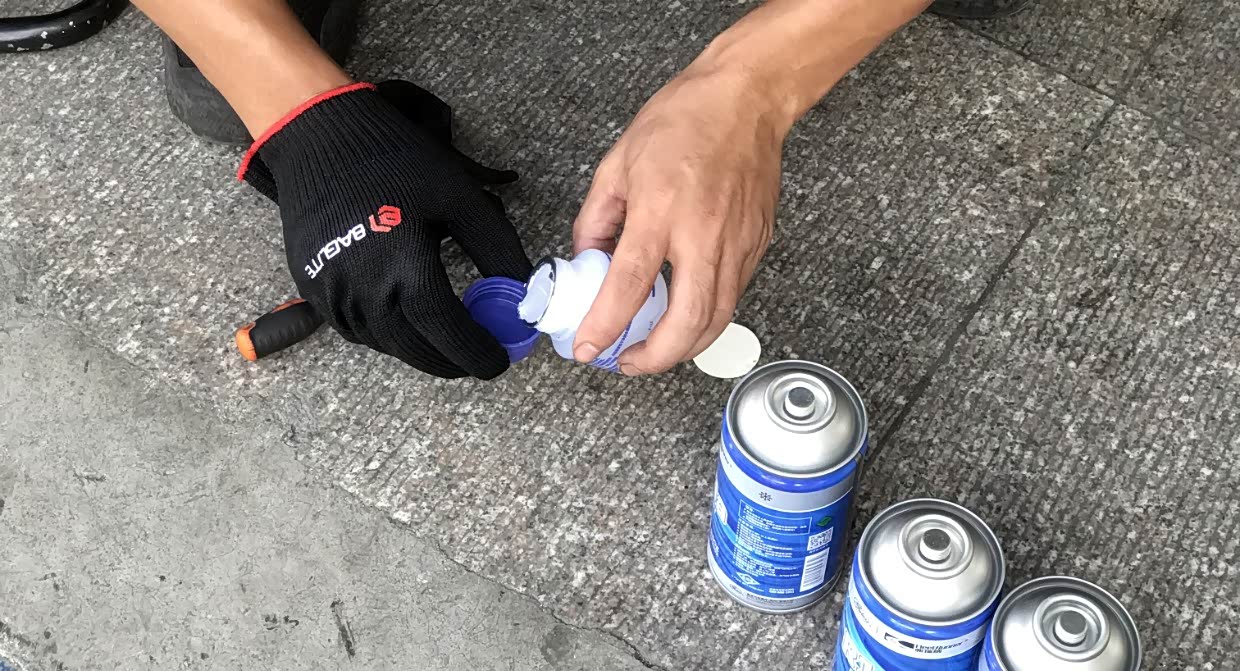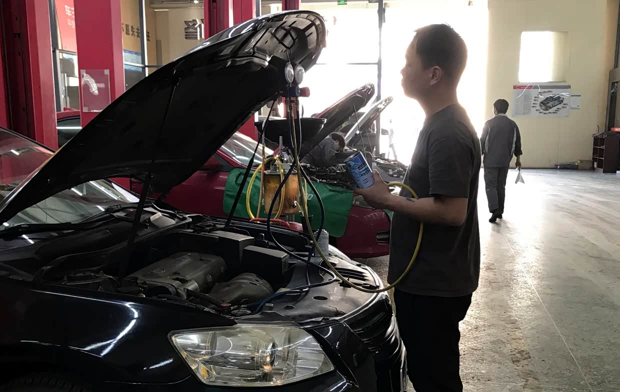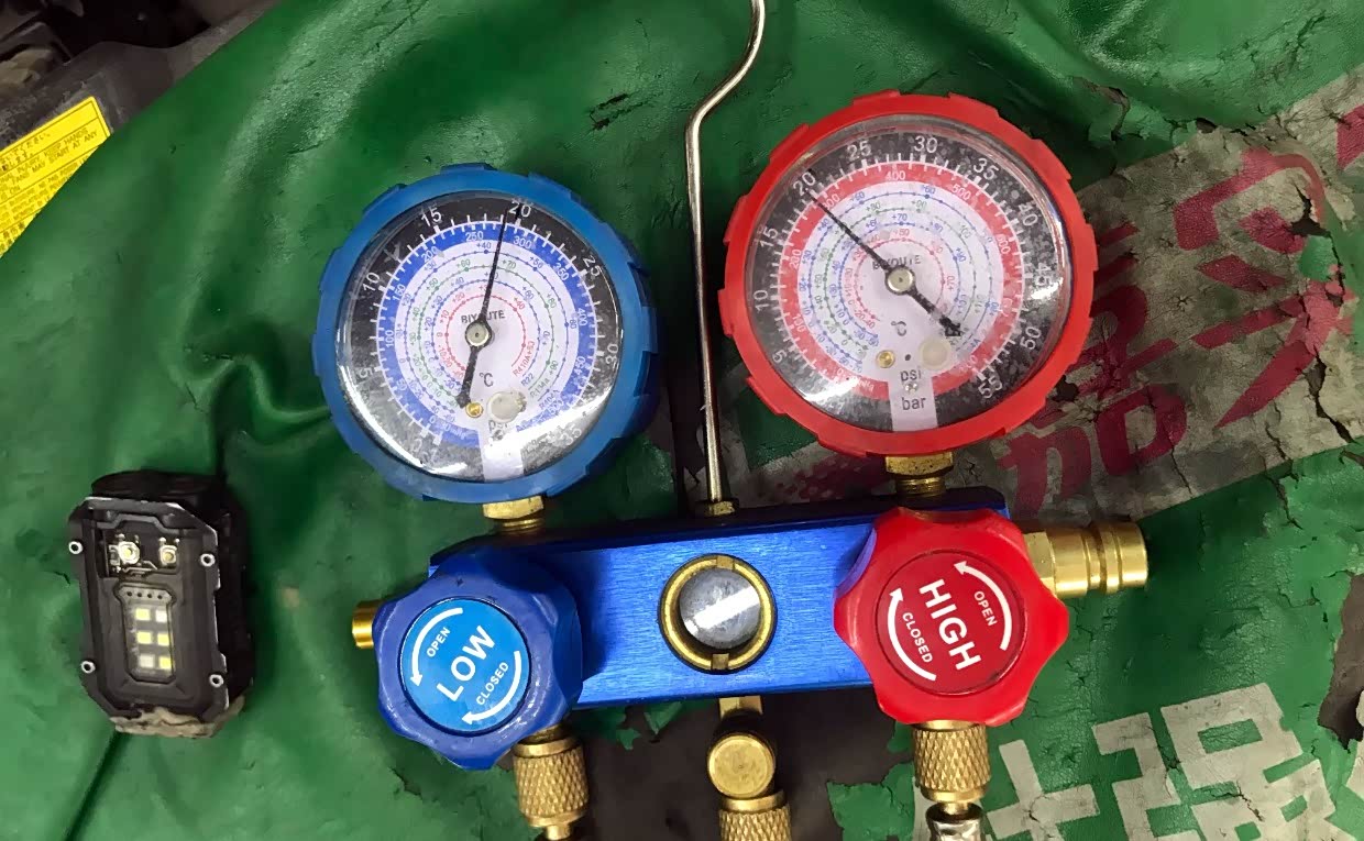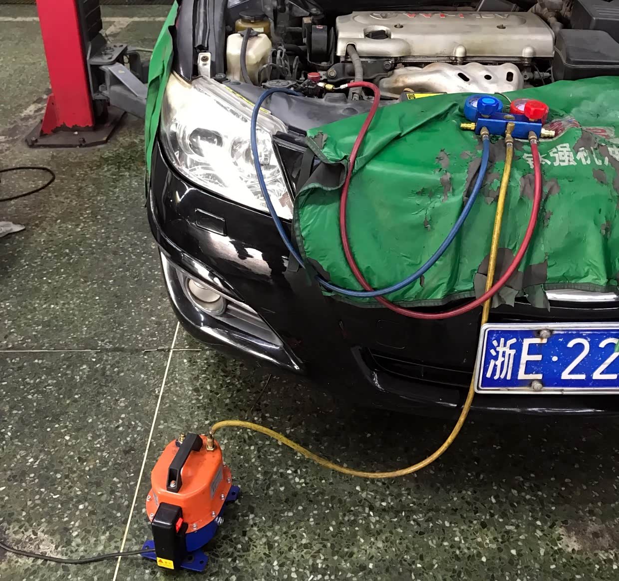 按维修手册要求加入450 - 550克冷媒,加两瓶500克正好。