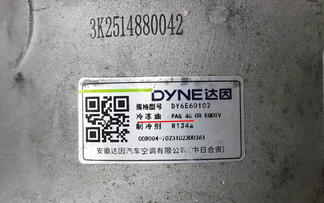 达因压缩机的冷冻油需要使用PAG 46的油。