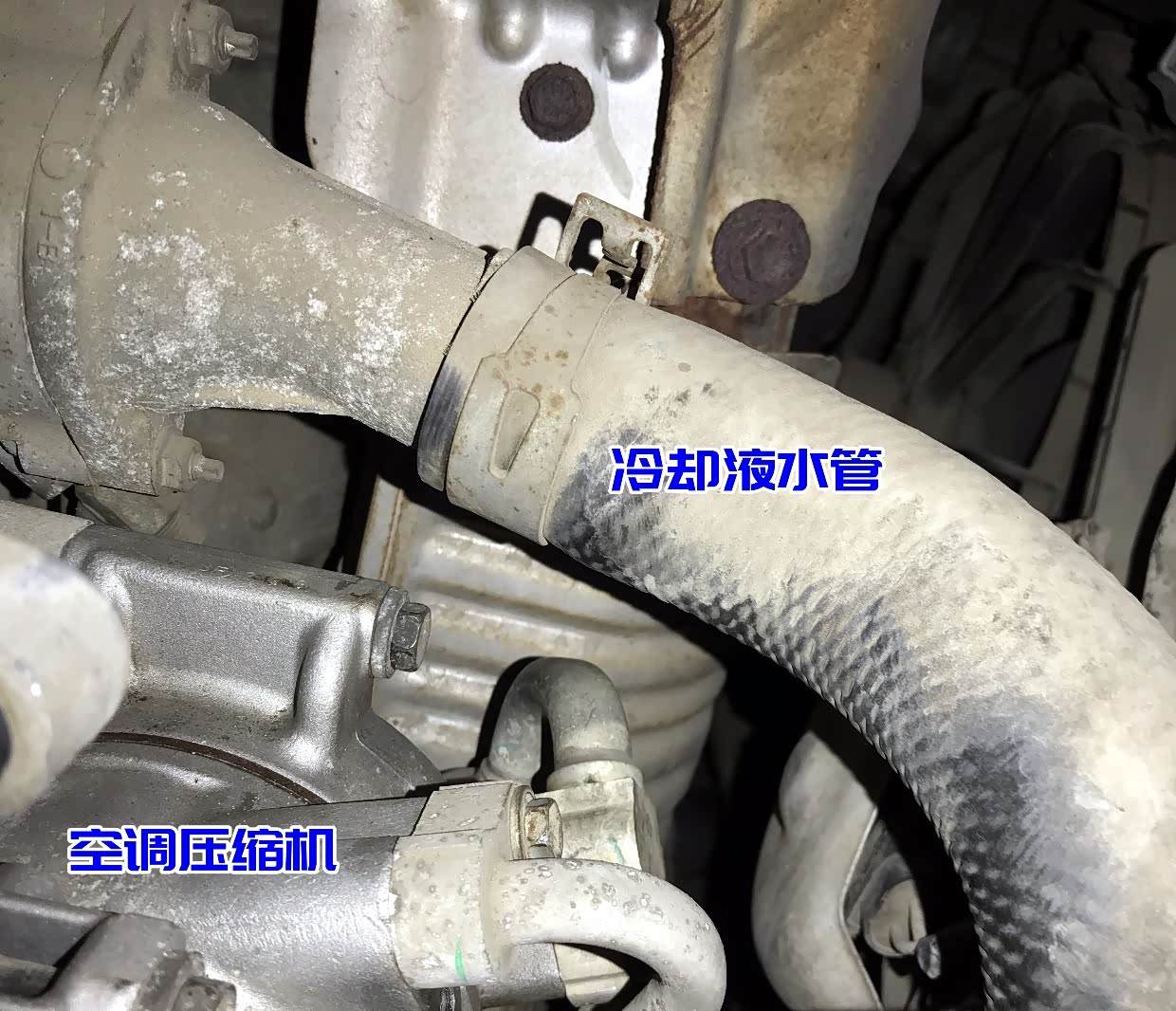 冷却液水管离压缩机有一定距离,更换压缩机的空间是够的,不用拆水管。