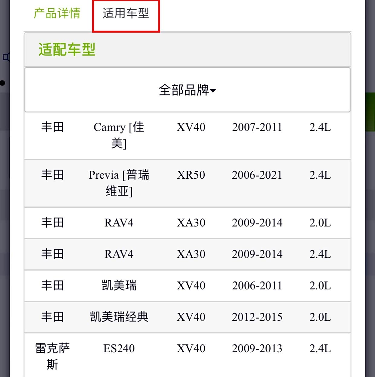 适用车型显示,六代凯美瑞的压缩机与进口凯美瑞(佳美)、普瑞维亚、RAV4、ES240通用,与这么多车型通用寻找起来就更方便了。