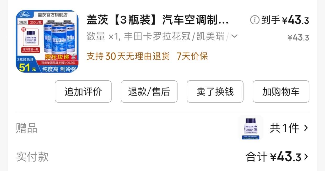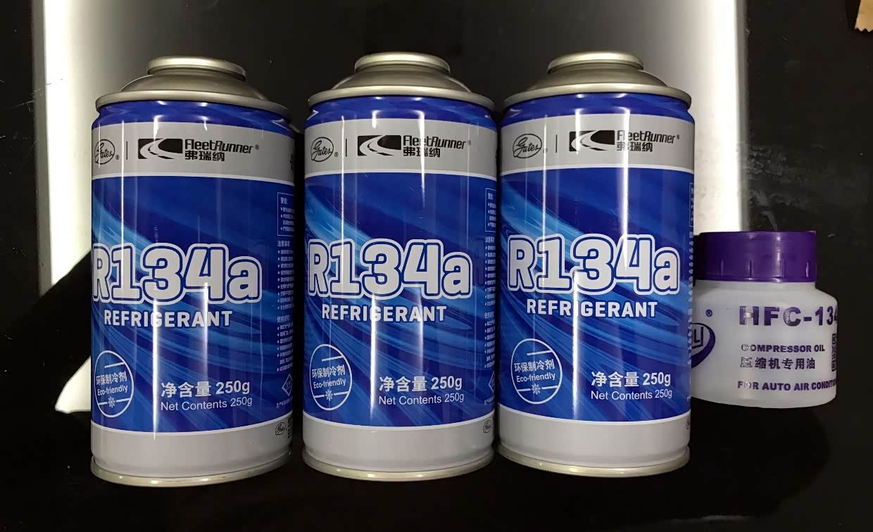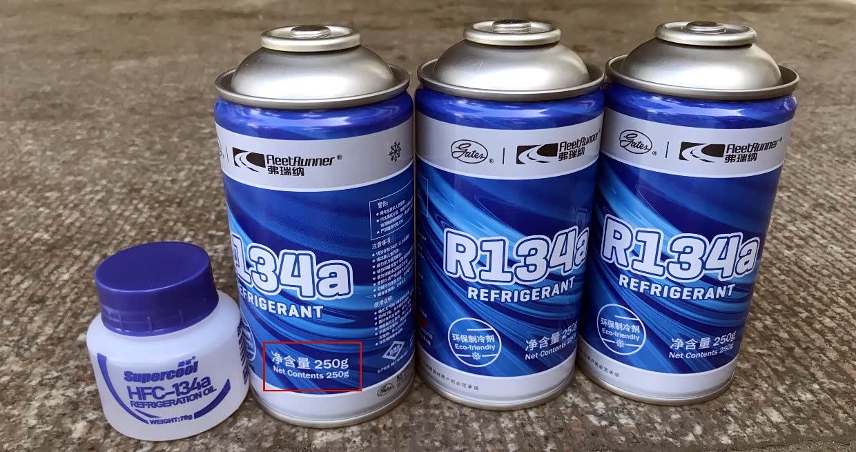 冷媒自带的盖茨品牌,250克一瓶,冷冻油是买三瓶送的。