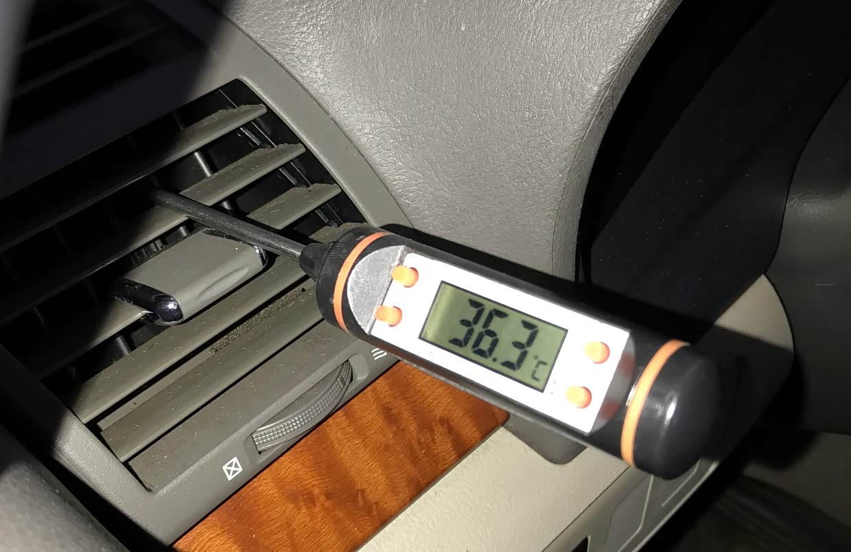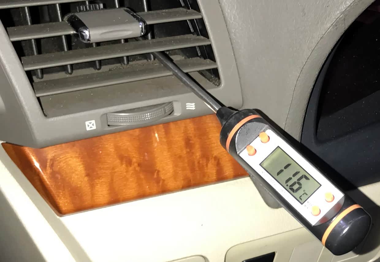 加完冷媒空调一切正常,出风口温度11.6度,车子跑起来还会更凉快。