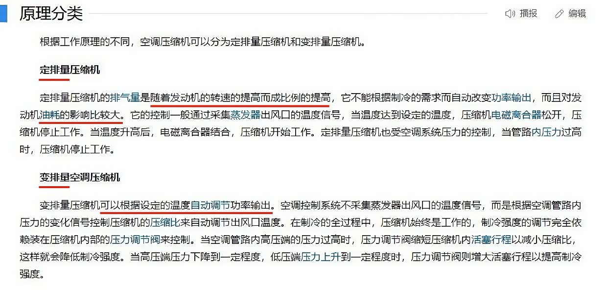 固定排量的压缩机是随着发动机转速的提高而成比例的提高(转速高,制冷强)。