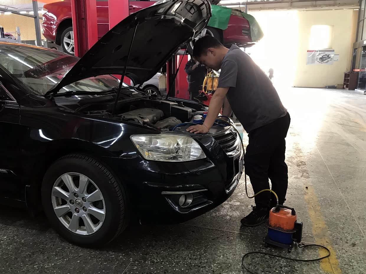 继续跑修理厂,这次三个师傅齐上阵,各显神通找渗漏的原因。