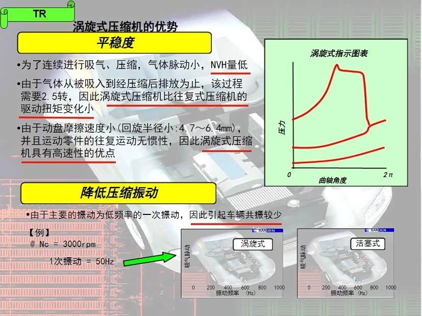 涡旋式相比活塞式,涡旋运转更平稳、更安静,压缩振动更小。