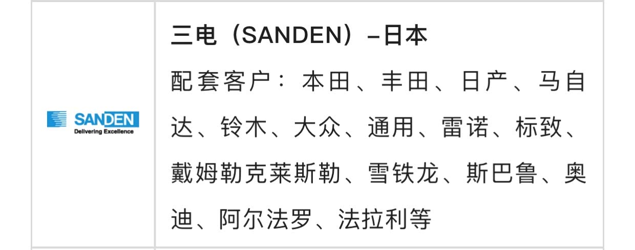 三电贝洱主要为上汽和一汽做配套生产,所以大众的车型用三电压缩机比较多。