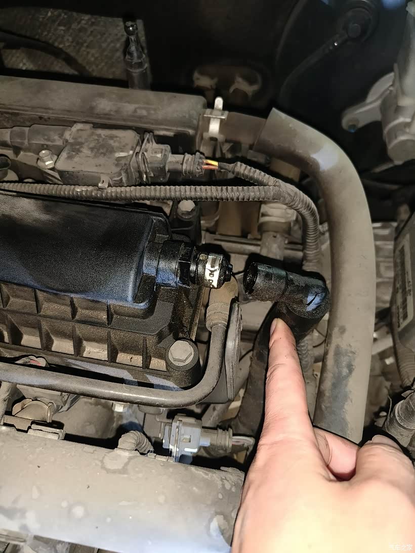 车子之前除了此处有油污外,没有明显异常。今天抹一下,发现老化断裂