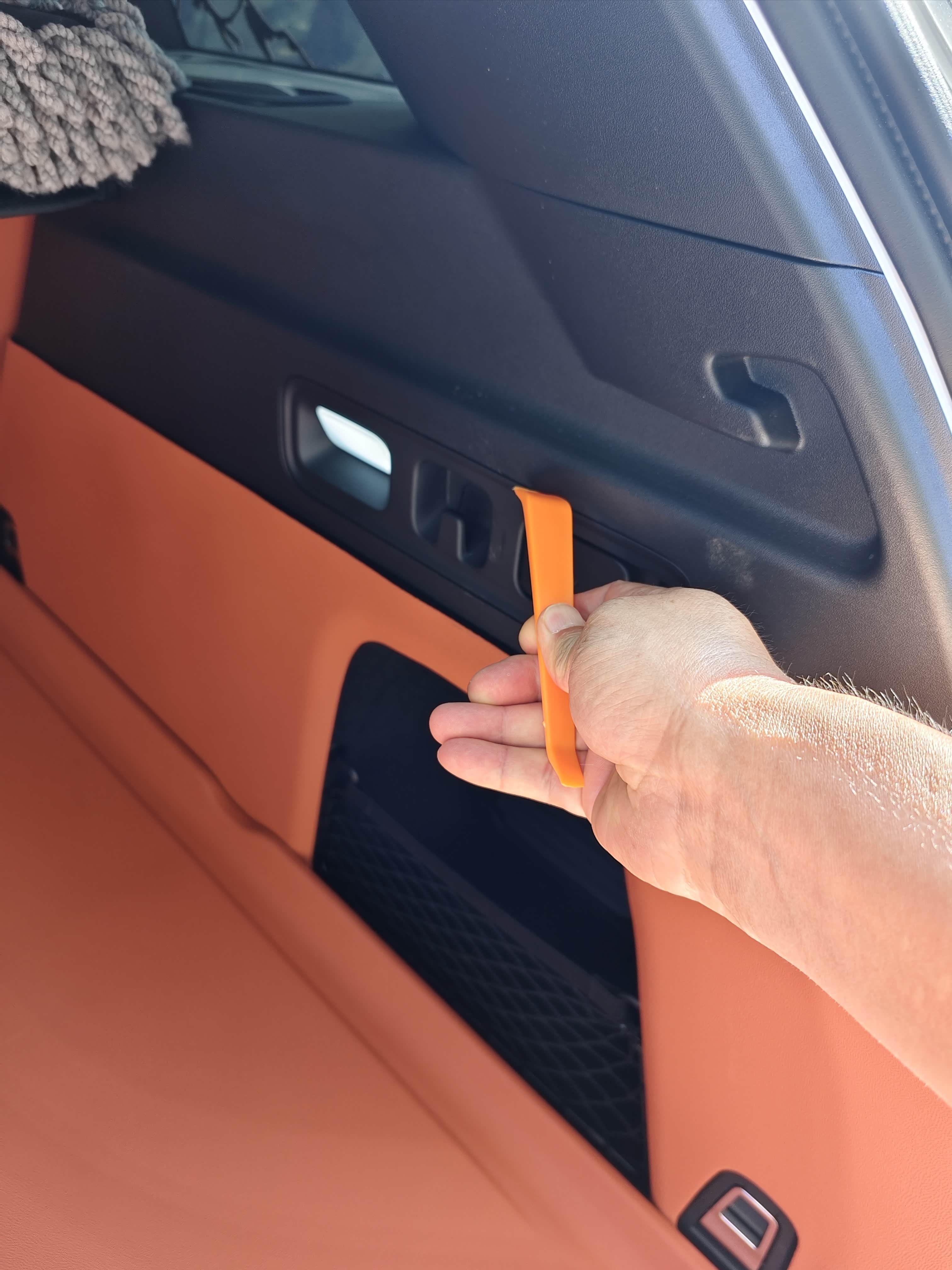 1. 拆开原车的灯盖板:用翘板轻轻插入后备箱侧边原车照明灯盖板的缝隙里,慢慢的一点一点往外撬,别用蛮力,搞花了塑料件就得不偿失了,实在难撬就再找一个个翘板配合。