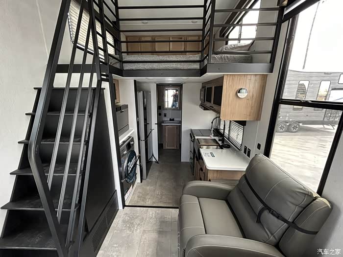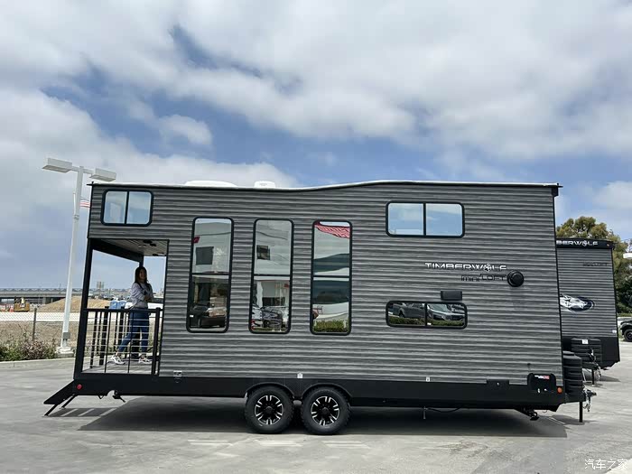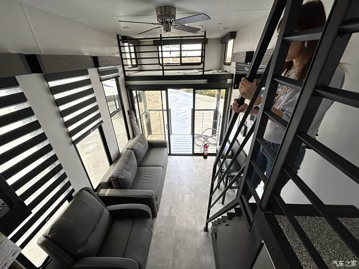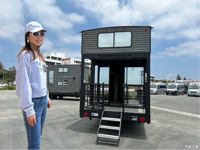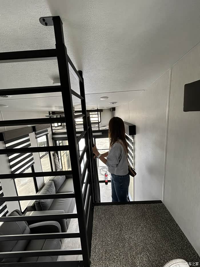 今天我陪老婆去看了房车销售展厅。不是说我们想买,但是想了解一下现在有哪一些新的车型。我们特别注目到的是一辆双层长居型房车。