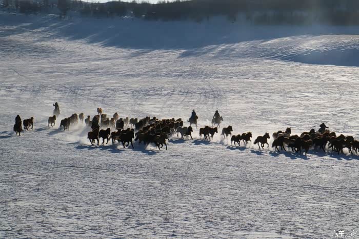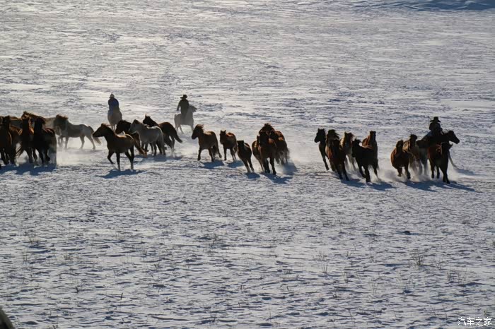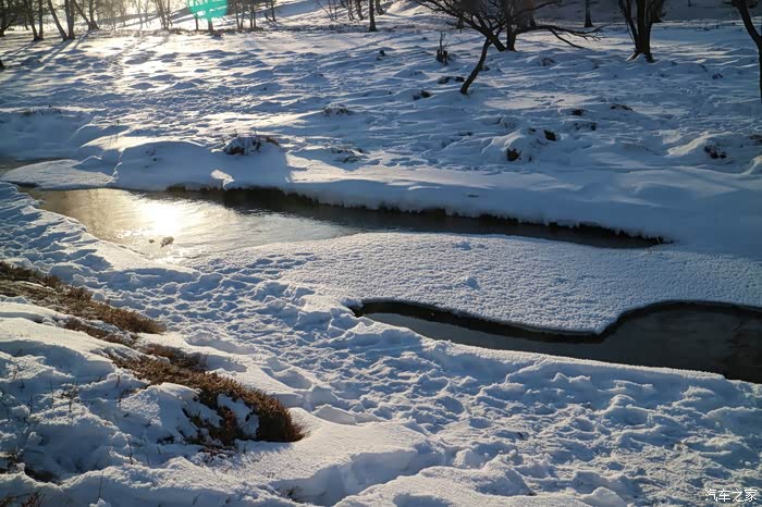 京加线、四御线、御克线,穿过塞罕坝国家森林公园就到了乌兰布统大草原兼大雪原,中午11点半到达,用时6个半小时,总里程470公里。从进入塞罕坝开始到目的地的50来公里都是冰雪路面,一路开着雪地模式过来,感觉不赖,开始不适应,总会很实在的踩刹车,就感觉脚底下一阵突突突,不知道是ABS还是啥,后来需要减速的地方就改成轻踩点刹,完全没问题了。