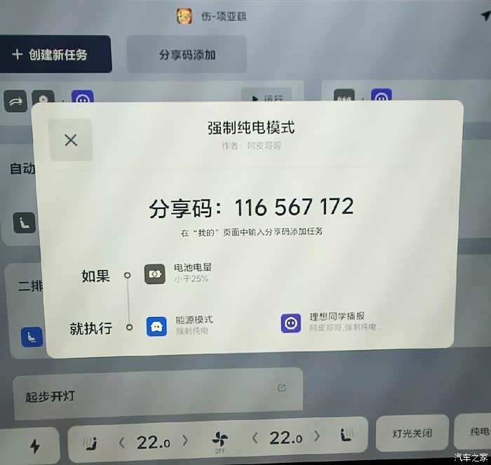 2.强制纯电。以前要开启强制纯电,只能通过语音或者手动开启,现在可以通过任务大师设置电量在一定比例(我设了25%)以下就自动开启,方便,省心
