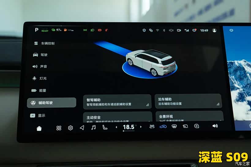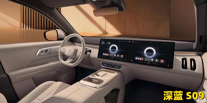 坐进车内,内饰实用性直接影响长途体验,两车中控屏设计差异明显。深蓝S09中控台布局简洁,主副驾配备双15.6英寸联屏,2.5K超高清视效,总显示面积略大于银河M9的30英寸中控屏,操作起来顺手且不遮挡驾驶视线。
