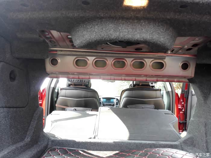 从后备箱看中控全景,后排座位放倒还算平整。但是怎么有大面积的钢铁裸露呢?