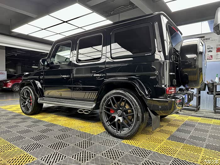 由于买的现车,没带暗夜套件,大灯银色部分太白了,差点意思。不想去拆装,于是低成本把全车灯组贴了STEK大灯熏黑膜,选的最浅色的膜,对亮度基本没什么影响,贴膜店师傅的手艺不错,贴的很完美,效果不错,把备胎罩和前后包围上的的一些银色部间也黑化贴了亮黑车衣,车身侧面贴了55周年的拉花。