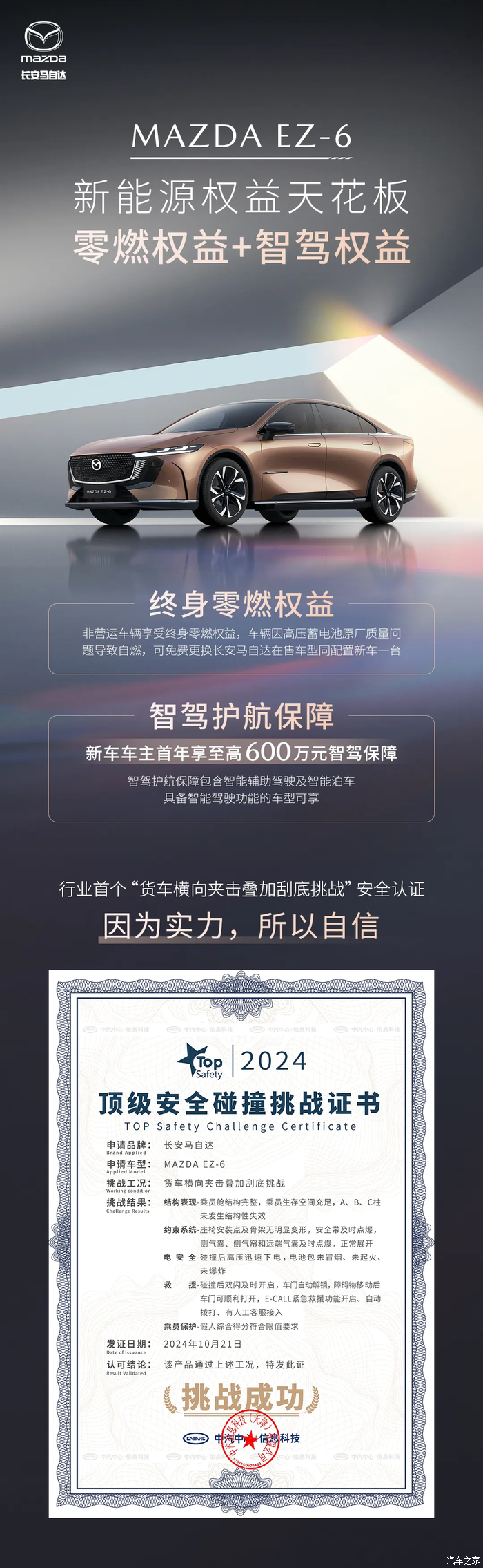 我个人觉得马自达ez6更具优势,智能化方面ez6拥有L2.5级别辅助驾驶,而比亚迪汉仅提供含13项驾驶辅助功能的L2级。车内空间相比,汉虽然外观看着更大,但是车内空间相对较为局促,特别是ez6的主驾相比汉,坐姿要低很多,有更低的驾驶重心。而且汉不支持座椅放倒,而ez6可放倒而且全平,体现了空间多变的优势。安全性方面,ez6车顶2000Mpa横梁,7横5纵笼式结构主体和车门防撞梁,车体高强钢占比86%,通过了“货车横向夹击叠加刮底挑战”,车身强度方面ez6也更胜一筹。同时ez6还为车主提供了终身零燃权益,最大程度的保证了车主的驾驶安全。种种对比下来,还是ez6更具优势。