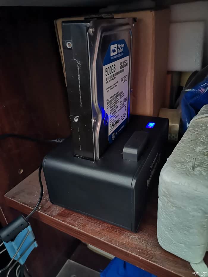 找个位置把盒子放好,毕竟这个是外接的,硬盘插在盒子里面还是有一点轻微的晃动,尽量避免晃动,这样才不容易坏。