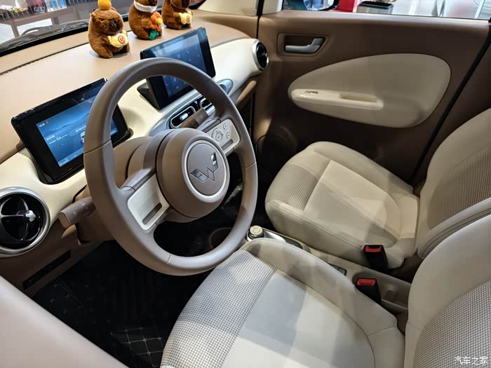 车子的内饰简约又温馨,虽然车身小巧,但内部空间设计很合理,满足出行的需求。出风口改成了圆形设计,与车身相互呼应。车辆液晶屏及中控屏界面显示更加简洁。
