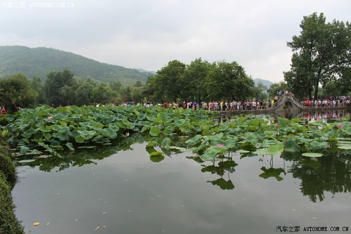 一路景色宜人,也没拍照直接来到第一站——宏村,大门口人山人海,还好我们提前网上买了票,原价104淘宝价94。门口遇到一群老外,女的个个美得冒泡,男的个个帅的掉渣,当时我就提着相机猥琐的上前要拍照,结果刚找准位置,他们上了中巴,T_T悲催啊。