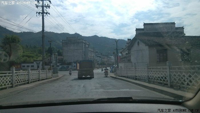 中途经过黟县县城取了点RMB,接着上路路过一个小镇也不知道叫什么名字,不过挺有感觉的,因为建筑风格跟我们这完全不同,这边无论几层的建筑基本都是黑瓦白墙,挺喜欢的。