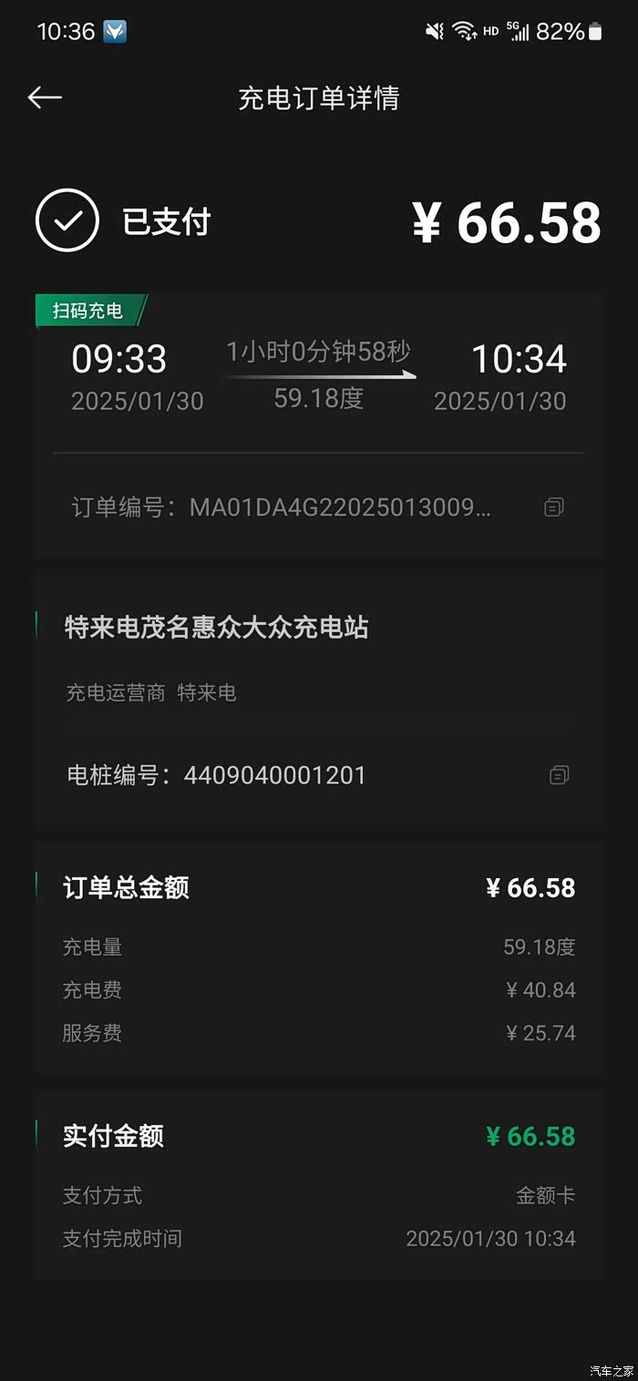 回程的时候,我提前规划好了在阳西补能。同样,极狐APP的路线规划精准无误,带我顺利找到了一个很大很方便的充电站。在阳西充了一个小时的电后,我继续踏上归途。到家的时候,电量还剩48%,完全超出了我的预期。
